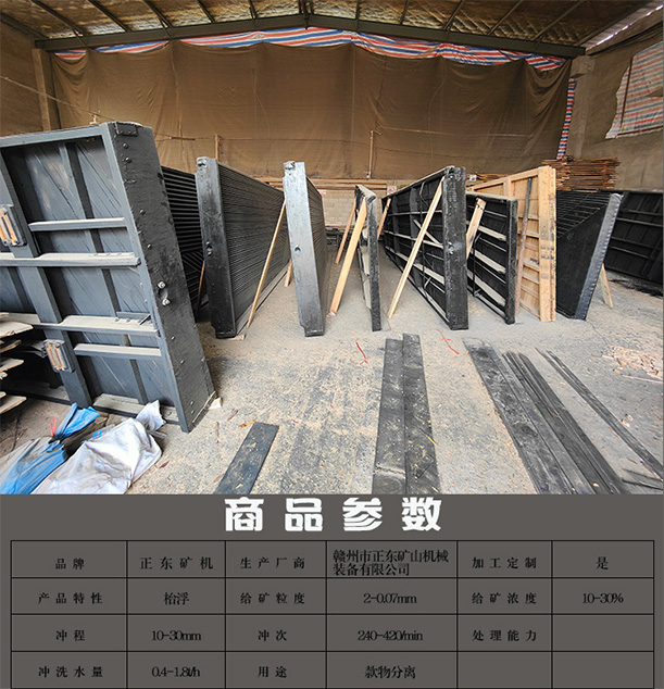 搖床浮選的原理是表層浮選,表面張力使疏水性顆粒上浮,而親水性顆粒下沉,進(jìn)而在搖床力場中實現(xiàn)分離。在搖床浮選中,經(jīng)藥劑作用后的礦粒給到濕式搖床上。礦漿稀釋到固體含量為30%~50%,并由風(fēng)嘴進(jìn)行充氣,風(fēng)嘴裝在床面上的一排鉆孔風(fēng)管上,風(fēng)管與床面呈直角,孔洞直接位于沿床條運動的物料之上。疏水性顆粒與氣泡形成凝聚體,然后上浮到水表面,在此處經(jīng)表層浮選達(dá)到搖床通常的“尾礦”端(即普通搖床中的較大輕顆粒端)。已潤濕的顆粒留在床條上,并由搖床尾端排出,通常該端是大多數(shù)搖床重選過程收集精礦的一端。搖床浮選最適合于黃鐵礦型錫精礦中硫化礦物的脫除,或者螢石、重晶石及磷酸鹽等非金屬礦物的富集。